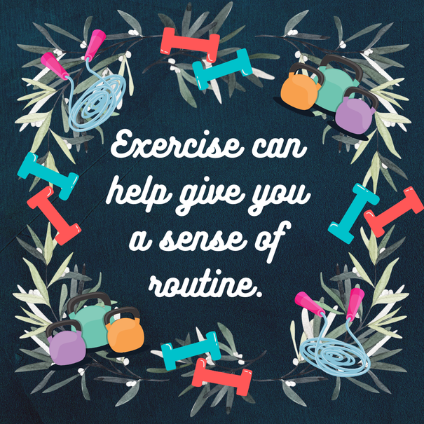 Exercise can help give you a sense of routine. Can I tell you how often I hear new clients saying they’re CRAVING for a regular routine in their lives? I haven’t done the actual math but it’s got to be over 75% of new potential clients. Our lives got turned upside down more than a few times in the last two years and a lot of us are grasping for something steady and constant. Making a point of working out x number of times per week, or to work out at y time of the day, or to see Your Favorite Trainer on Earth z times per month: That’s routine. That’s steady. That’s consistency and that can help you anchor yourself while everything else flies around your head.